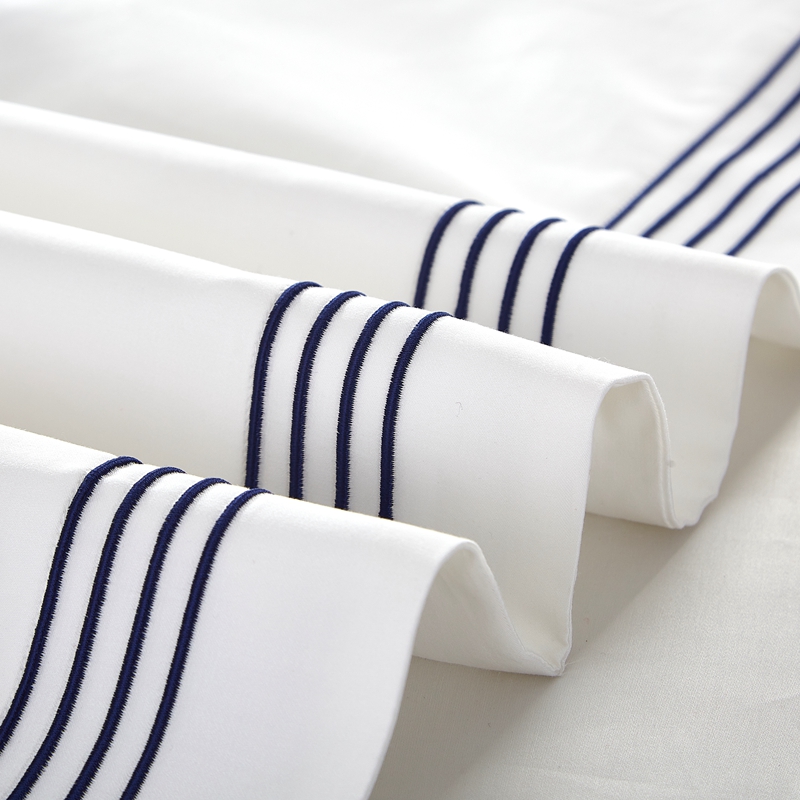 Dom / Proizvodi / Garnitura hotelske posteljine / Garnitura hotelske posteljine od pamuka / Četiri linije vezene navlake za poplun 100% pamuk bijela 300TC set posteljine